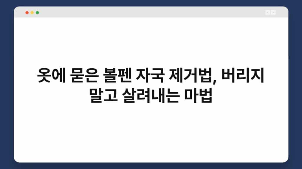 옷에 묻은 볼펜 자국 제거법은 많은 사람들이 한 번쯤은 겪는 문제입니다. 소중한 옷에 볼펜 자국이 생기면, 순간적으로 당황하게 되죠. 특히나 ...