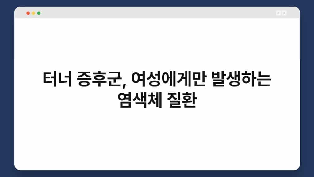 도입부 터너 증후군은 여성에게만 발생하는 염색체 질환으로, X 염색체의 일부가 결실되거나 손상되어 발생합니다. 이 질환은 성별에 따라 영향을 미치기 때문에, ...