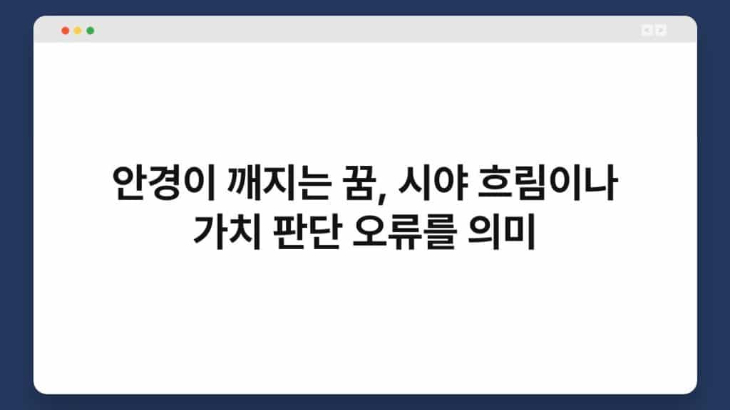 안경이 깨지는 꿈은 많은 이들에게 불안한 감정을 불러일으키는 상징적인 꿈입니다. 꿈에서 안경이 깨지는 모습은 단순히 시각적인 문제를 넘어, 우리의 가치 ...