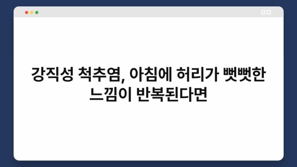 강직성 척추염은 만성 염증성 질환으로, 주로 척추와 골반 관절에 영향을 미칩니다. 이 질환은 시간이 지남에 따라 척추가 굳어지는 경향이 있어, ...