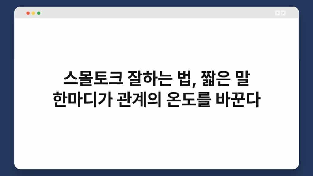 스몰토크 잘하는 법은 일상에서 사람들과의 소통을 원활하게 하는 중요한 기술입니다. 짧은 말 한마디가 관계의 온도를 바꿀 수 있다는 점에서, 스몰토크는 ...
