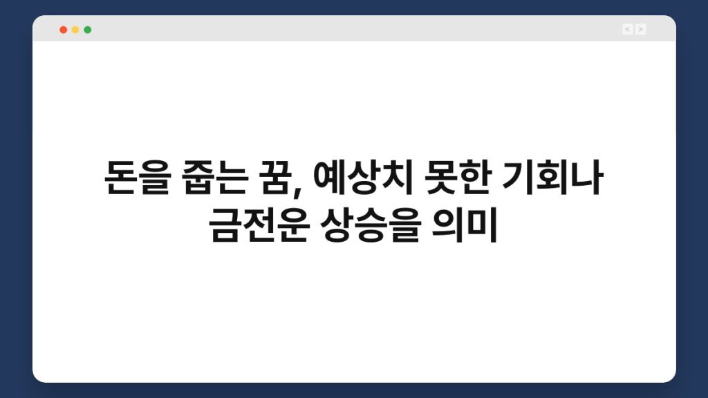 돈을 줍는 꿈은 많은 사람들에게 흥미로운 경험으로 다가옵니다. 이 꿈은 예상치 못한 기회나 금전운 상승을 의미한다고 알려져 있습니다. 실제로 꿈에서 ...