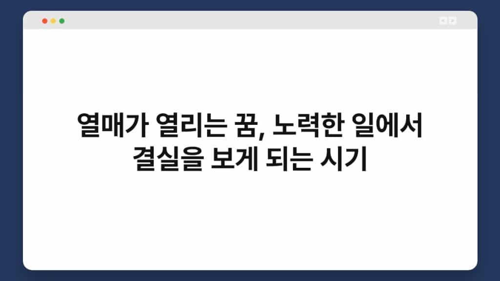 열매가 열리는 꿈은 많은 사람들에게 긍정적인 의미로 해석됩니다. 이는 노력한 일에서 결실을 보게 되는 시기를 상징하기 때문입니다. 삶에서 힘든 과정을 ...