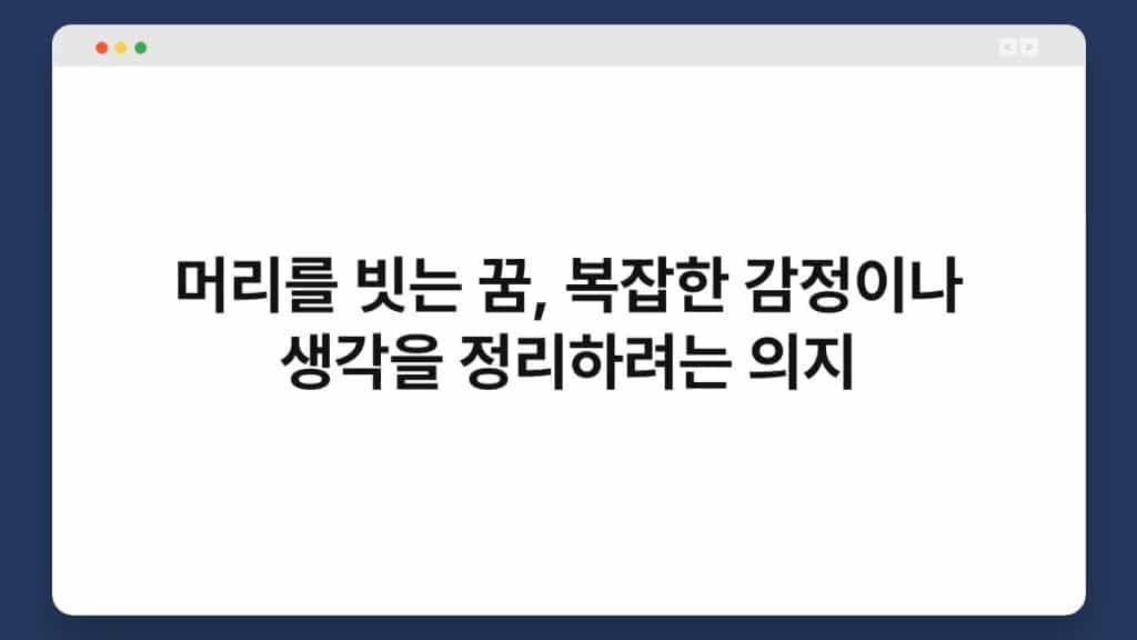 머리를 빗는 꿈은 복잡한 감정이나 생각을 정리하려는 의지를 상징합니다. 꿈에서 머리를 빗는 장면은 종종 마음속의 혼란을 해소하고, 내면의 갈등을 정리하려는 ...