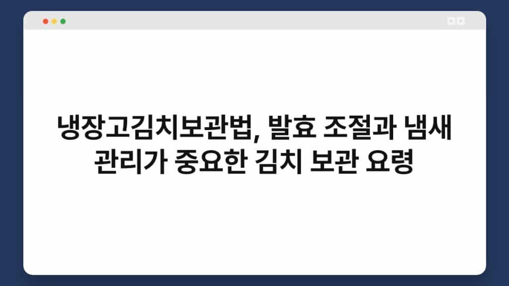 냉장고김치보관법은 많은 가정에서 필수적으로 알아야 할 중요한 주제입니다. 김치는 한국의 대표적인 발효식품으로, 올바른 보관 방법이 없으면 맛과 질감이 쉽게 변할 ...