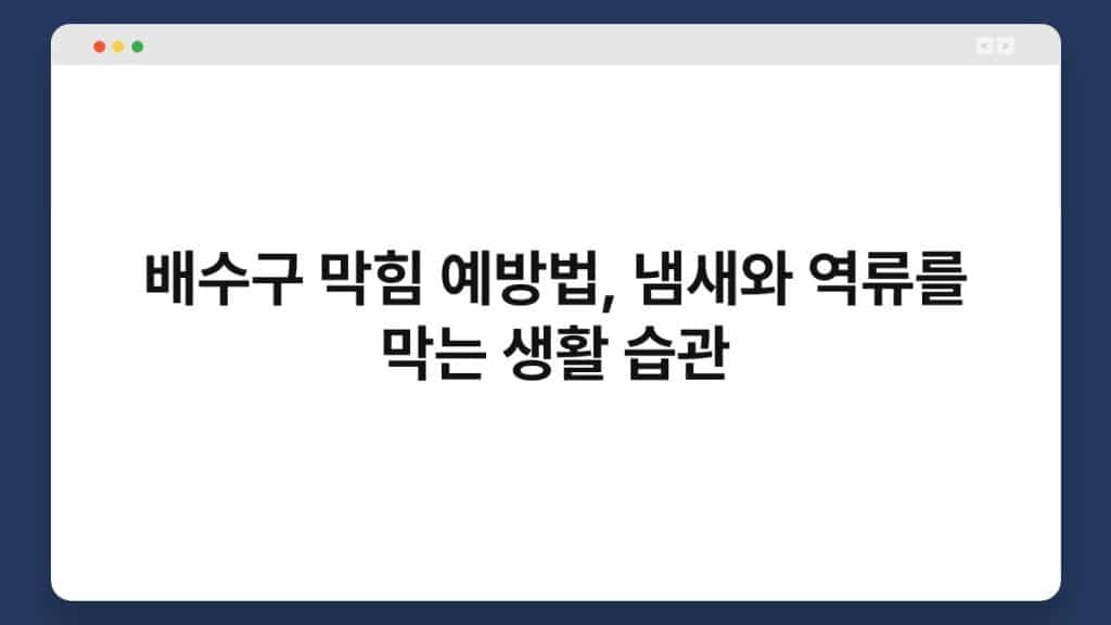 배수구 막힘은 많은 가정에서 겪는 흔한 문제입니다. 배수구가 막히면 불쾌한 냄새와 함께 물이 역류하는 상황이 발생할 수 있어요. 이를 방지하기 ...