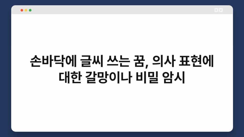 손바닥에 글씨 쓰는 꿈은 매우 흥미로운 주제입니다. 이 꿈은 보통 의사 표현에 대한 갈망이나 숨겨진 비밀을 암시하는 경우가 많습니다. 꿈속에서 ...