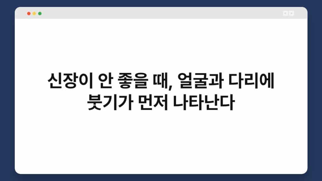 신장이 안 좋을 때, 얼굴과 다리에 붓기가 먼저 나타난다는 사실은 많은 사람들이 간과하는 중요한 건강 신호입니다. 신장은 우리 몸의 필수적인 ...