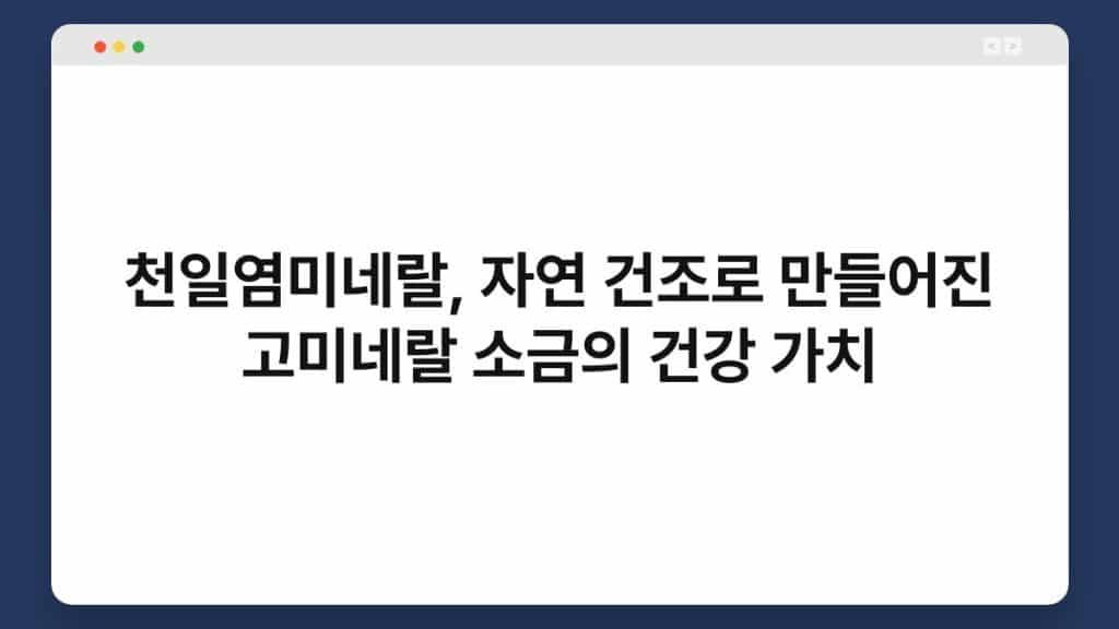 천일염미네랄, 자연 건조로 만들어진 고미네랄 소금의 건강 가치