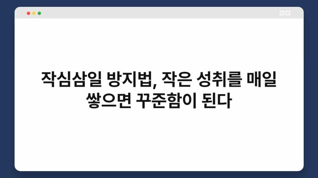 작심삼일 방지법은 많은 사람들이 목표를 세우고도 쉽게 포기하는 이유를 해결하기 위한 방법입니다. 특히 새로운 계획이나 결심을 세운 후, 초기의 의욕이 ...