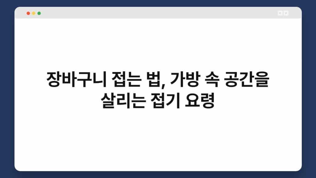 장바구니 접는 법은 일상에서 자주 활용되는 유용한 기술입니다. 특히 쇼핑을 하거나 여행을 갈 때, 장바구니를 어떻게 접느냐에 따라 가방 속 ...