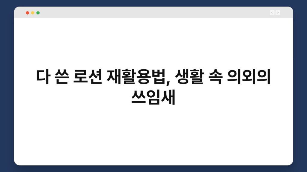 다 쓴 로션 재활용법은 많은 사람들이 간과하는 부분입니다. 화장품을 다 쓰고 나면 보통은 빈 용기를 버리기 마련인데, 사실 이 용기들은 ...