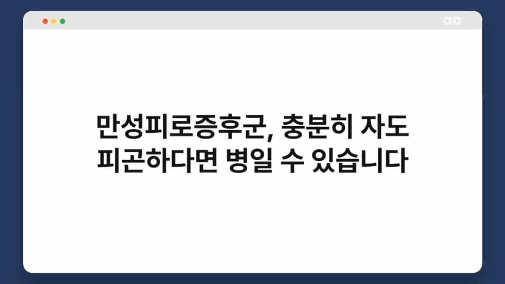 만성피로증후군은 지속적인 피로감과 다양한 신체적, 정신적 증상을 동반하는 질환입니다. 이로 인해 일상생활이 크게 영향을 받을 수 있습니다. 많은 사람들이 충분한 ...
