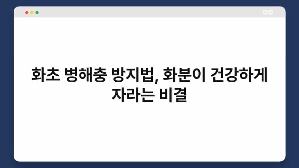 화초를 기르는 것은 많은 이들에게 즐거움과 힐링을 줍니다. 하지만 화초가 병해충에 시달리면 그 즐거움은 순식간에 사라지죠. 저도 여러 번 화초를 ...